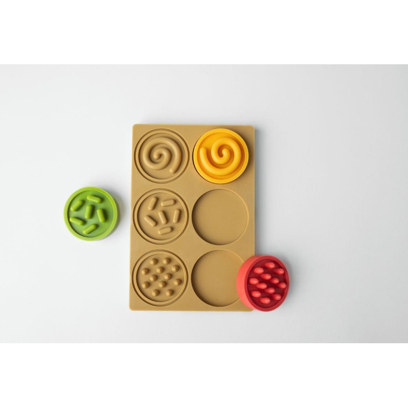 Puzzle sensoryczne KÓŁECZKA od Mom's Care to innowacyjna zabawka edukacyjna stworzona z myślą o wszechstronnym rozwoju Twojego dziecka. Zestaw składa się z miękkiej, bezpiecznej deski z trzema różnorodnymi kształtami i odpowiadającymi im otworami oraz trzech kółeczek sensorycznych, z których każde posiada unikalną fakturę odpowiadającą jednemu z kształtów na desce. Zabawa polega na dopasowywaniu kółeczek do odpowiednich miejsc na desce, co pozwala dziecku na poznawanie różnych struktur poprzez dotyk.