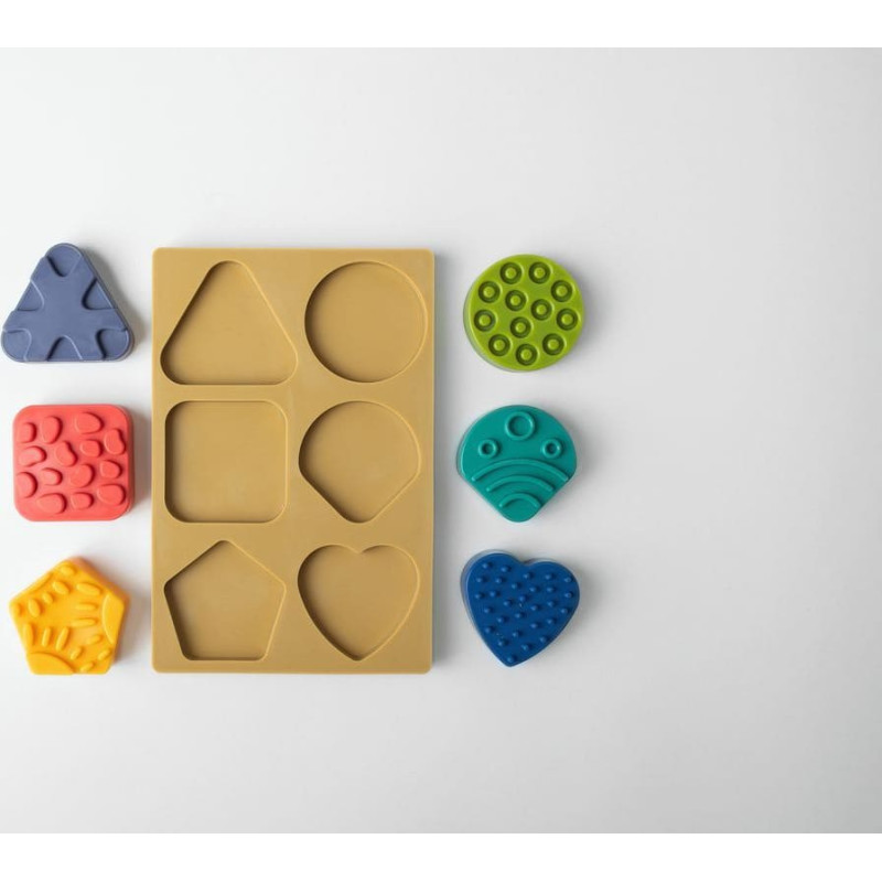 Zestaw zawiera sensoryczną deskę oraz 6 oddzielnych kształtów sensorycznych.