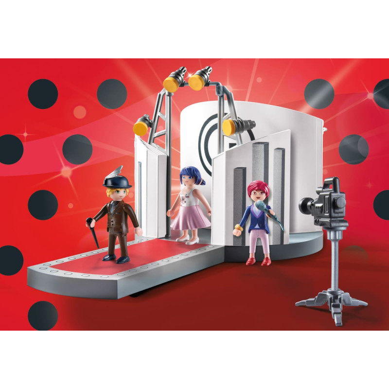 Leiskis į magišką „Miraculous“ pasaulį su PLAYMOBIL rinkiniu „Madų šou Paryžiuje“, pasinerk į populiaraus serialo scenas ir įsijausk į personažų rolę. Rinkinyje yra pagrindinė veikėja ir būsima mados dizainerė Marinetė Dupain-Cheng, taip pat Adrienas Agreste, jos klasės draugas ir madų šou modelis. Podiumą sudaro apvali pagrindo plokštė, nuimamas takelis ir sienos elementai su dviem persirengimo stotelėmis. Čia personažai gali pasiruošti savo pasirodymams ir savo makiažo priemones bei aksesuarus susidėti rūbinės lentynose. Marinetė gali rinktis tarp elegantiškos suknelės su derančia kauke ir vėduoklėmis, madingo sijono, kuprinės, taip pat įvairių karolių ir apyrankių. Adrienas turi savo silikoninį paltą, šalmą, lazdelę ir stilingą kepurę. Su šiuo rinkiniu galėsi pasinerti į įdomius vaidmenų žaidimus ir atskleisti savo kūrybiškumą bei vaizduotę. Rinkinys „Madų šou Paryžiuje“ – puiki dovana „Miraculous“ gerbėjams, norintiems atkurti mėgstamiausias serialo scenas ir patirti naujų nuotykių.