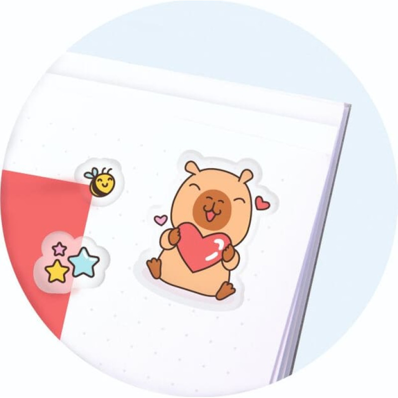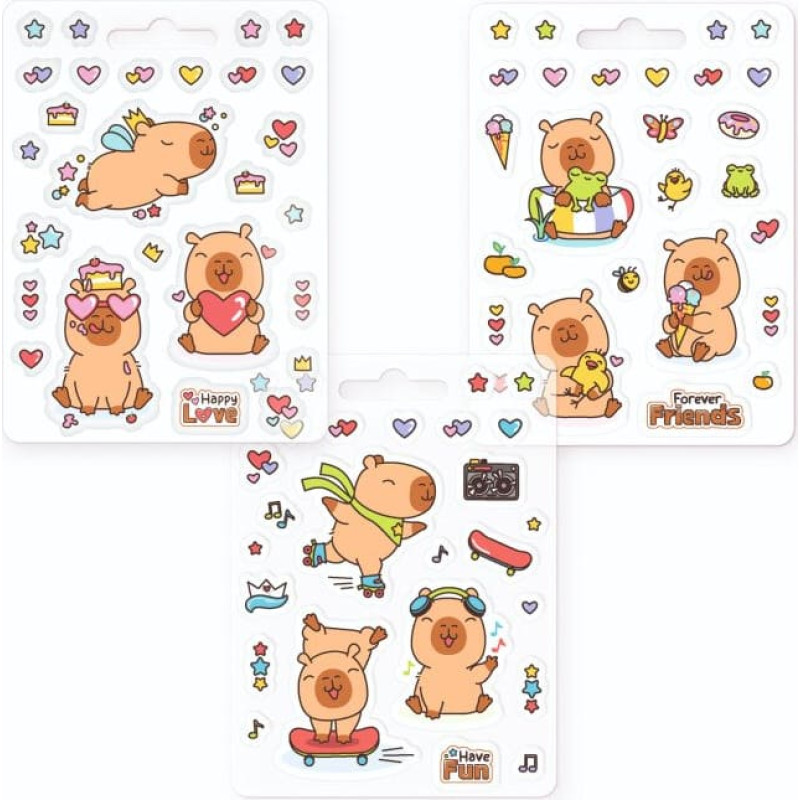 *Limited edition product line!* With 26 high-quality capybara stickers, every creative project will be a real eye-catcher! The transparent edge and the slightly raised surface give the lovingly designed stickers a sophisticated look – perfect for decorating and designing with style. Size of sticker sheet: approx. 9.0 x 12.2 cm Available in 3 different versions: Love, Fun, Friends.Warning! Not suitable for children under 36 months. Small parts. Choking hazard. Adult supervision advisable. Please keep this warning! Made in China.