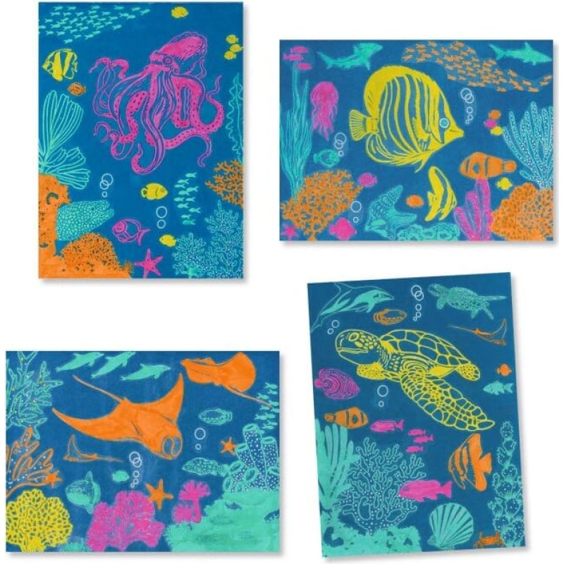 Kūrybinis cianotipijos rinkinys povandeniniams peizažams sukurti ir nuspalvinti. Rinkinyje yra 8 lapai šviesai jautraus popieriaus (21 x 28 cm), 4 flomasteriai, 4 kompoziciniai puslapiai, 80+ atspausdinti ant acetato raštai, 1 organinio stiklo lakštas ir žingsnis po žingsnio instrukcija. Gėlių ir augalų raštai, kuriuos galite patobulinti tikrais augalais. Rekomenduojamas amžius: nuo 7 metų. Dėmesio! Netinka vaikams iki 3 metų, dėl smulkių detalių yra pavojus užspringti. Kilmės šalis: K.L.R.