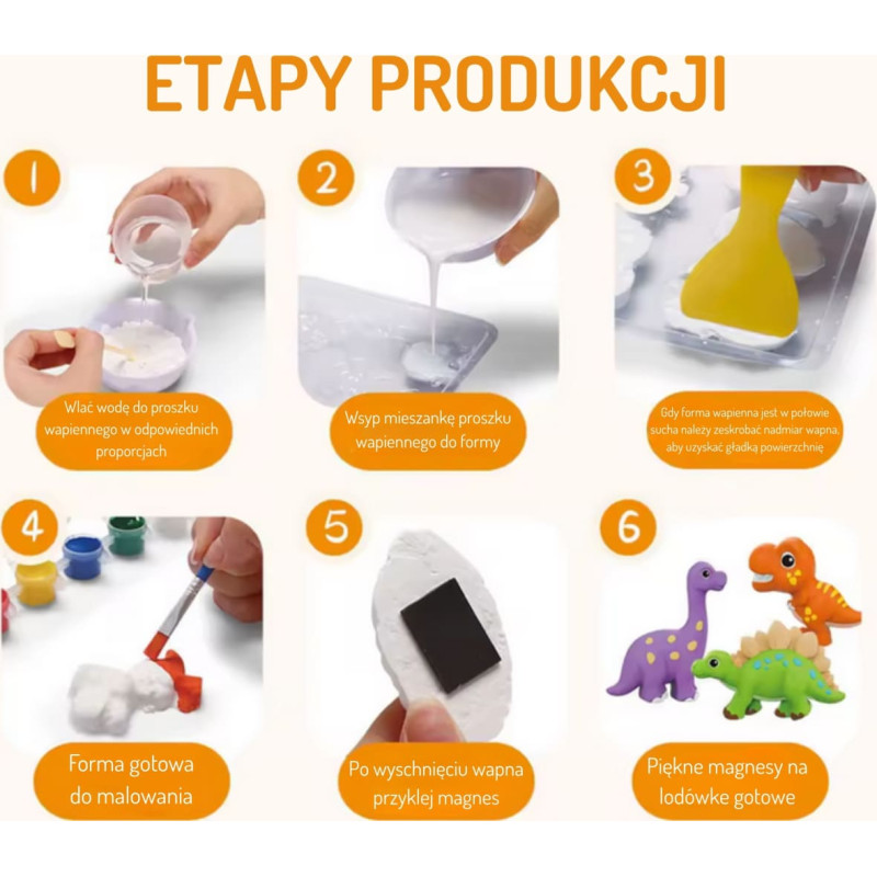 Woopie Zestaw Kreatywny z Farbami DIY Zrób Odlewy Gipsowe Figurki i Pomaluj - Zestaw Dinozaury