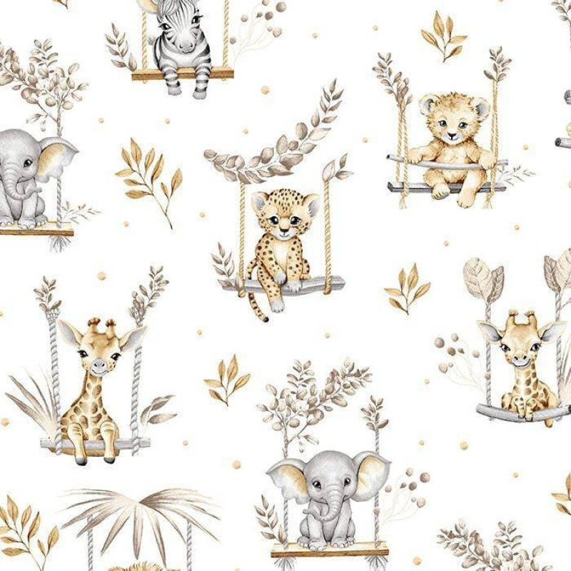 Ankras Cover set - 2 pcs - 120x90, 40x60 - ZWIERZĘTA NA HUŚTAWCE - BEŻ