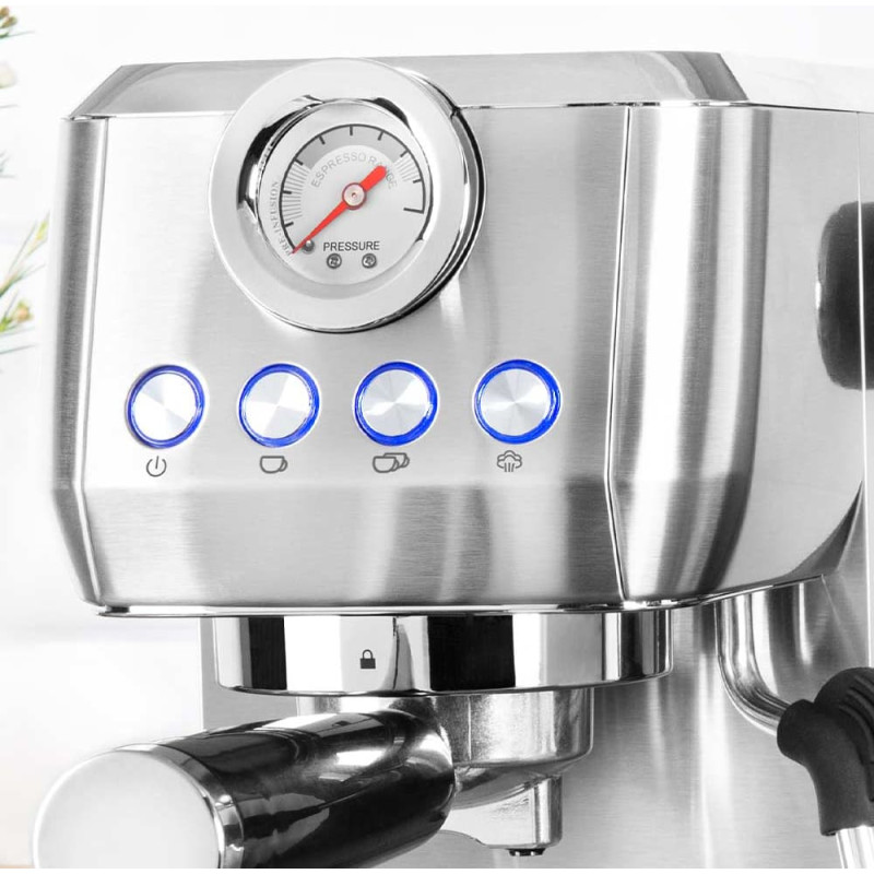 funkcijos Portafilter espreso aparatas skirtas visoms kavos rūšims Labai plonas dizainas kiekvienai virtuvei – tik 15 cm pločio Tinka ir E.S.E.- įklotams, praktiški ir draugiški aplinkai Karšto vandens funkcija Cafe Americano Espreso kavos kiekį galima laikyti atskirai Integruotas pieno putojimo antgalis, putoja visų rūšių pieną ir pieno alternatyvas Termoblokų sistema su išankstinio užvirinimo funkcija, greitas įkaitinimas Elektroninis PID valdymas tiksliai stebi vandens temperatūrą Profesionali ULKA espreso pompa (15 barų) Su manometru, optimalaus espreso valdymo funkcija Nuimamas vandens bakas (1,3 litro) Valymo ir kalkių šalinimo programa Nuimamas lašų padėklas Priedai: Espreso tamperis su matavimo šaukštu, sieto įdėklai 1 ir 2 puodeliams, E.S.E. trinkelės įdėklas   Techniniai duomenys Maitinimas: 220-240V~, 50-60Hz Energijos sąnaudos: 1350W Maitinimo laido ilgis: apytiksl. 80 cm Svoris: apytiksl. 3,9 kg Matmenys: apytiksl. 330 mm x 150 mm x 308 mm (ilgis x plotis x aukštis) Talpa: vandens bakas - apytiksl. 1,3 litro