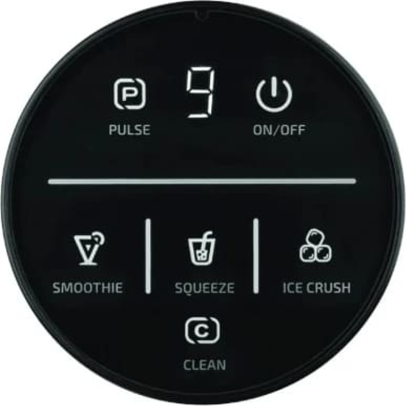 Galia: 1800 W 6 nerūdijančio plieno peiliukai 4 automatinės programos PULSE funkcija Jutiklinis skydelis Elektroninis greičio valdymas Stiklinis puodelis Talpa: 1,75 l Saugumo užraktas Ledo smulkinimas