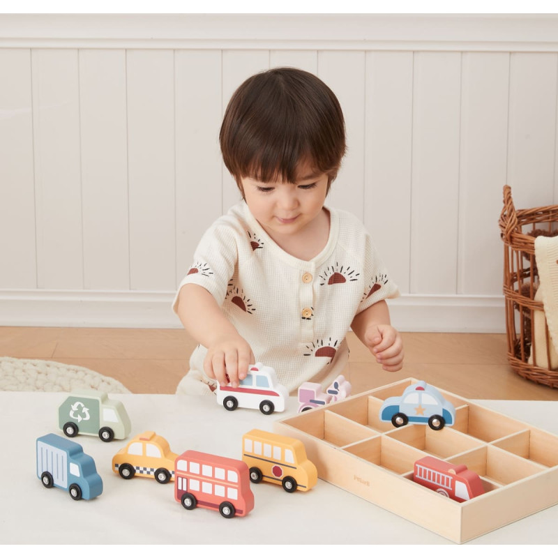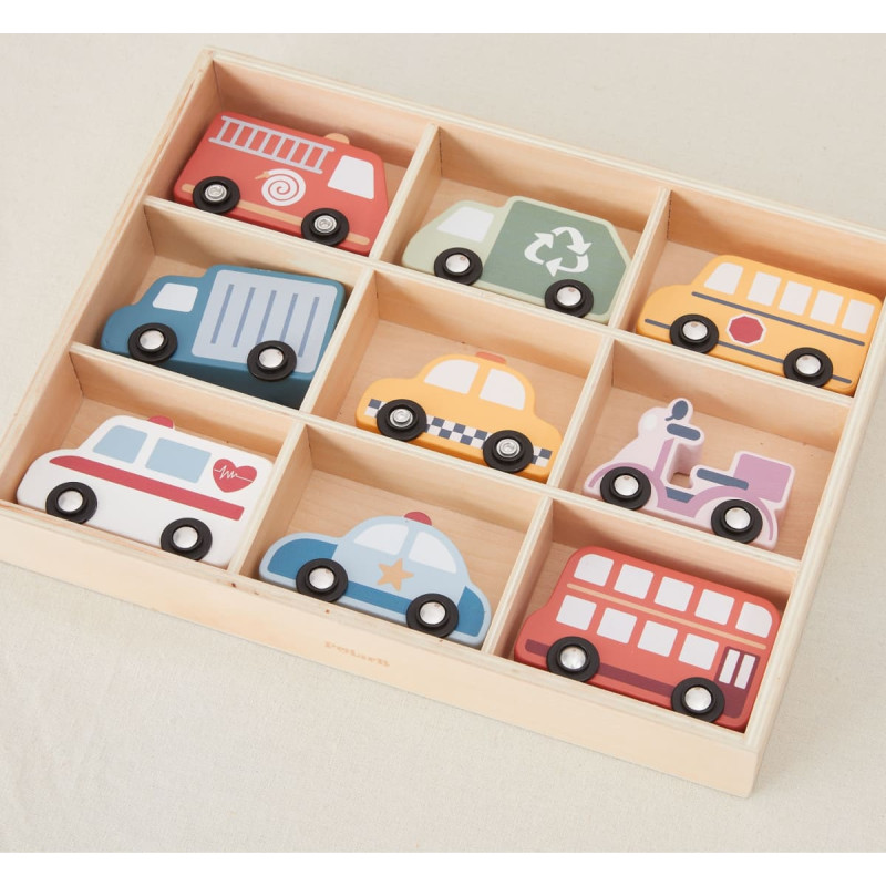 Viga Drewniany Zestaw Kolorowych Pojazdów Miejskich 9szt.
