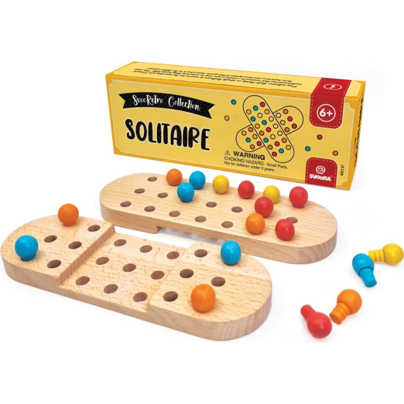 Klasikinis strateginis žaidimas, lavinantis pastabumą. Kaip žaisti? Išdėliokite visus medinius kaištelius lentoje, palikdami vieną tuščią vietą centre. Kiekvienu ėjimu šokite vieną kaištelį per kitą į tuščią vietą – peršoktas kaištelis pašalinamas. Judėti galima tik horizontaliai arba vertikaliai. Negalima šokti į šoną, įstrižai arba per dvi vietas. Žaiskite tol, kol nebeliks galimų ėjimų. Tikslas – palikti vieną vienintelį kaištelį lentoje! Rinkinyje: - 2 dalių žaidimo lenta.