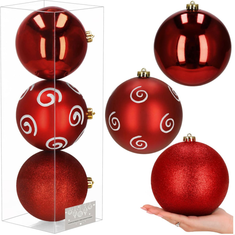Pagrindinė informacija Prekės ženklas: Springos® Medžiaga: plastikas Spalva: raudona, balta Kiekis rinkinyje: 3 vnt Nesulaužomos burbulai Kabinimo virvelės komplekte Tipas: pusiau matiniai / su blizgučiais / blizgūs Forma: apvali Rinkinyje yra: 1x burbulas su blizgučiais 1x pusiau matinė burbulas su baltomis spiralėmis 1x blizgus burbulas Matmenys: Aukštis su kabliu: 15 cm Skersmuo: 14 cm