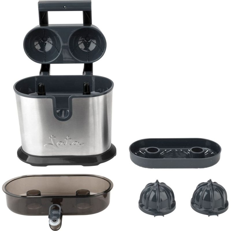 Dvigubas kūgis vienu metu išspaudžia dvi sultis. Lankstus svirtis, kad būtų lengva išimti. Automatinis įjungimas: įsijungia paspaudus. Didelis sulčių išspaudimo greitis. Apsauga nuo lašėjimo dangtelio. Visiškai nuimamas, kad būtų lengva valyti. Neslystantis pagrindas. Įtampa 230 V Galia 1100 W