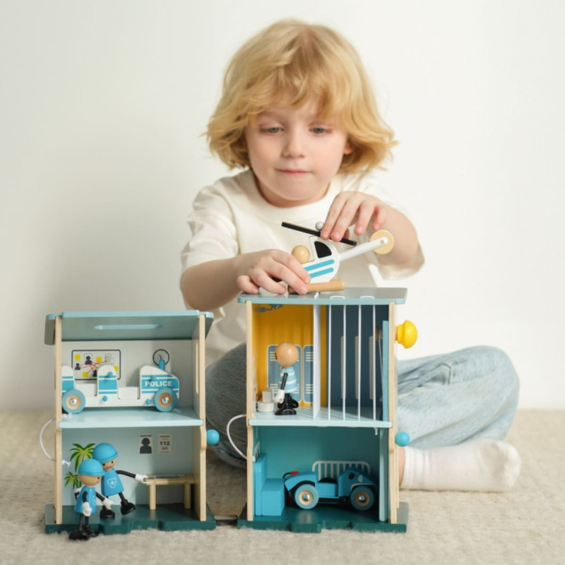 Classic World Posterunek Policji Drewniany Samochód Helikopter FIgurki 12el.