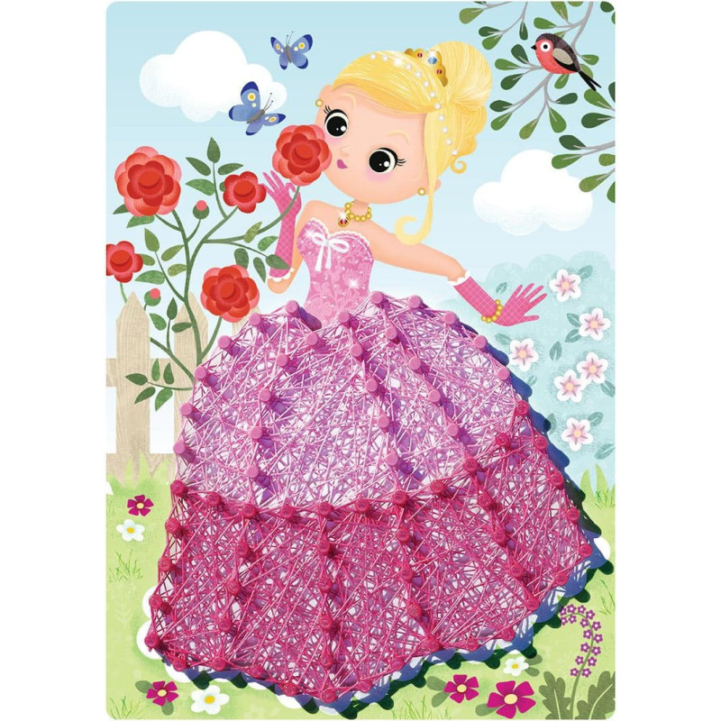 String It mini: Princess by Ravensburger is a DIY craft kit that lets kids create beautiful string art projects! It’s easy — just push the plastic pins into the board and weave the threads in any direction to reveal a lovely woven pattern. Children can choose the thread colors freely and enjoy a fun, creative activity that encourages artistic expression. Once finished, their masterpiece can decorate and personalize their room perfectly. Includes: 2 boards, 240 plastic pins, 1 pusher, thread, and instructions.