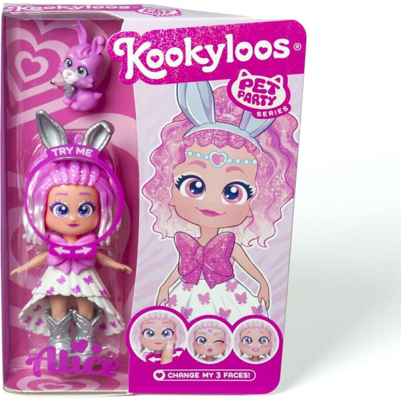 Kolekcinė lėlė Alice su drugeliu. Ji turi savo madingus drabužius ir aksesuarus bei tris skirtingus veidus! Sudėtyje yra: 1 Kookyloos lėlė.1 augintinis.Madingi drabužiai ir batai.1 aksesuaras.