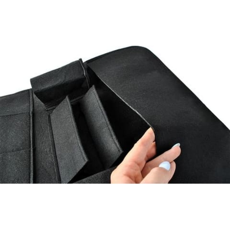 SĒDEKĻA AIZSARDZĪBA - auto organaizers ne tikai ļauj sakārtot nepieciešamākās lietas un viegli tām piekļūt, bet arī lieliski pasargā sēdekļa atzveltni no notraipīšanas ar apaviem. Šis ir ideāls risinājums gan gaišam, gan tumšam polsterējumam – organaizeru ir vieglāk iztīrīt nekā visu krēslu.