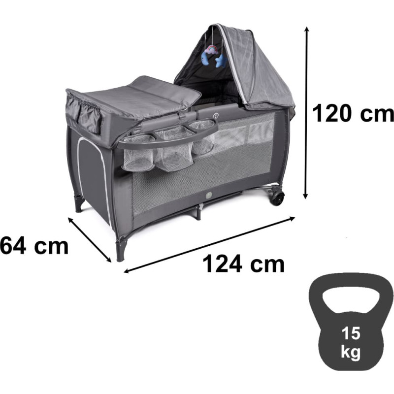 Ceļojumu gultiņa salokāms divu līmeņu pārtinamais galds maks. 15 kg
