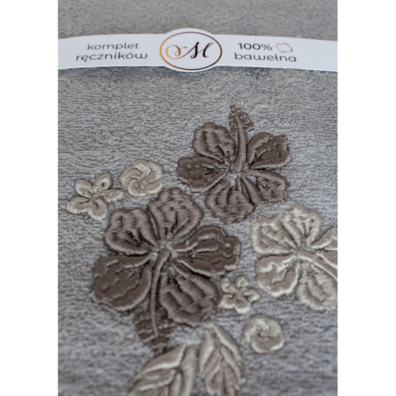 RĘCZNIK KPL.MARIBELLA 3 SZT./30X50/50X100/70X140/ FROTTE HAFT 004 HIBISKUS JASNY SZARY