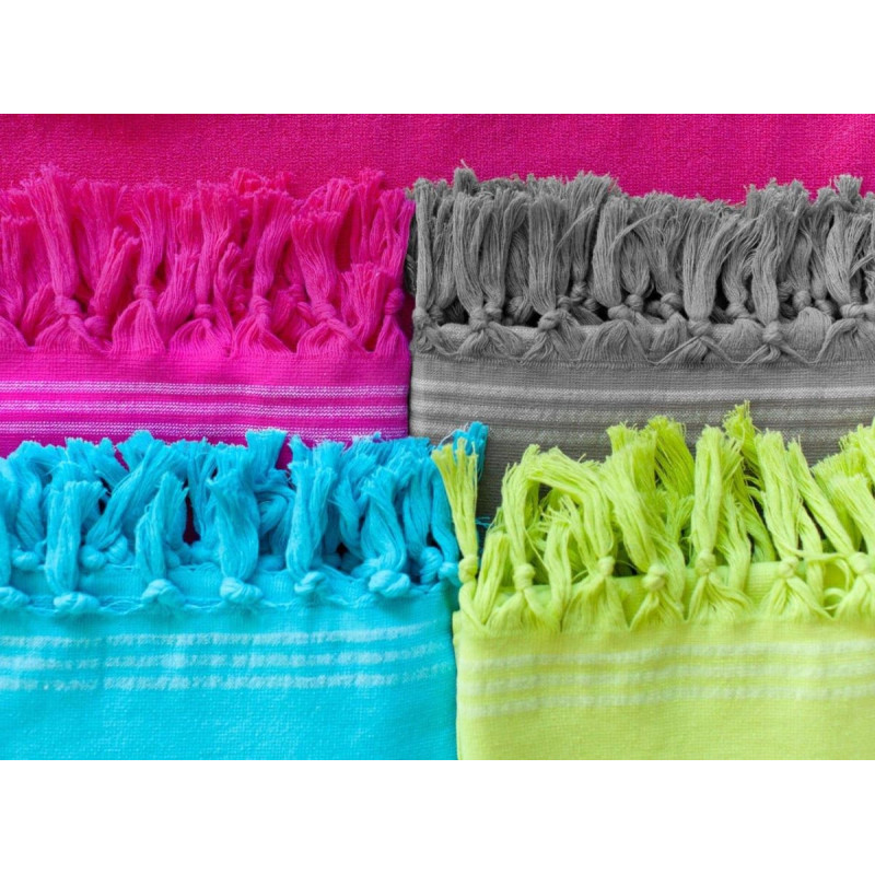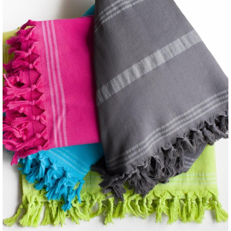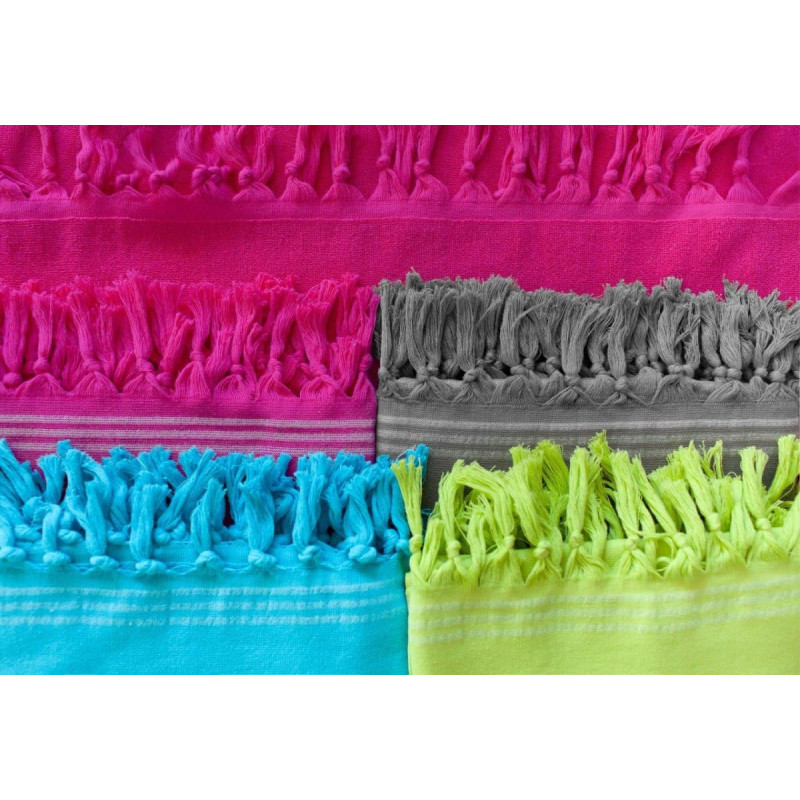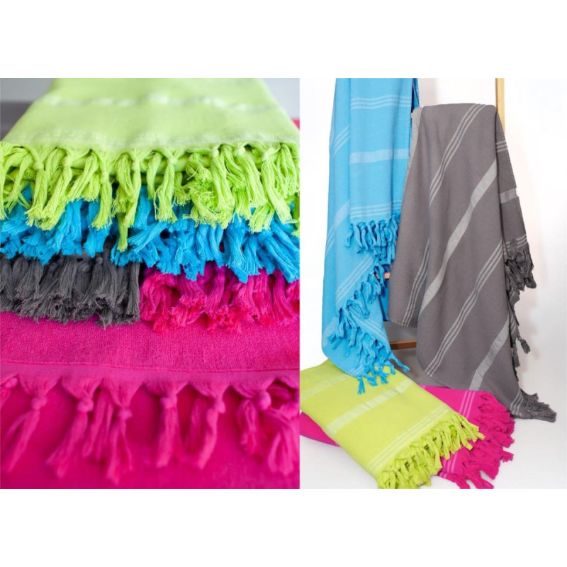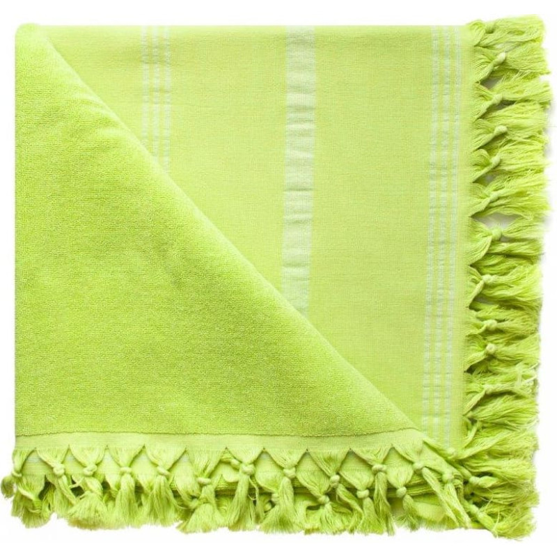 RĘCZNIK PLAŻOWY Z FRĘDZLAMI RELAX 90X170 cm LIMONKA W PASKI
