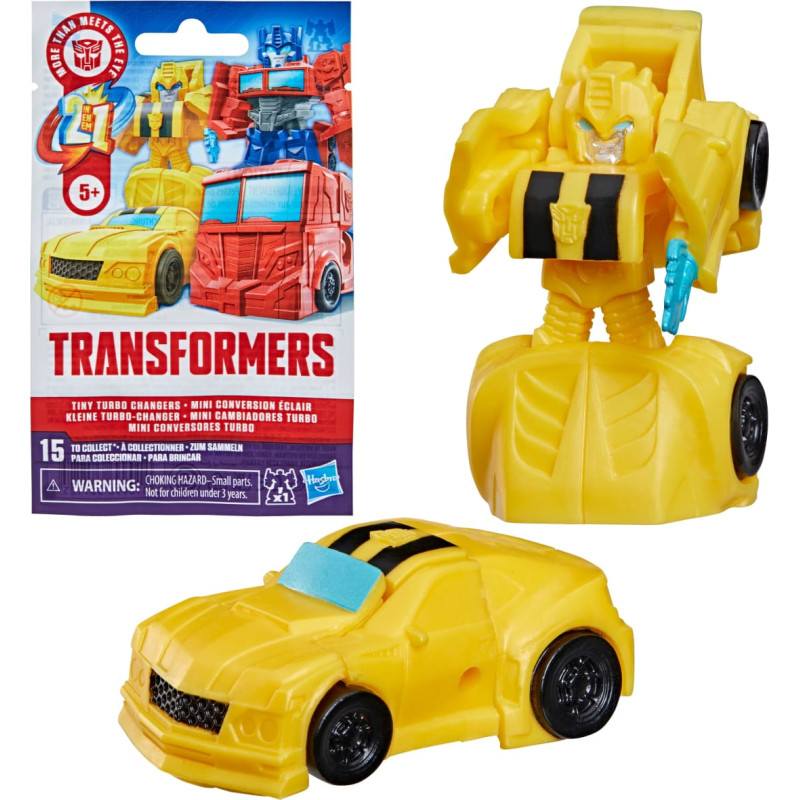 Atrask vieną iš 15 „Transformers Tiny Turbo Changers“ mini siurprizų! Kiekviena 3,5 cm figūrėlė keičiasi iš roboto režimo į alternatyvųjį režimą vos 2–5 paprastais veiksmais. Asortimente yra Optimus Prime, Bumblebee, Wheeljack, Autobot Whirl, Arcee, Autobot Hot Rod, Autobot Ratchet, Elita-1, Grimlock, Megatron, Shockwave, Soundwave, Starscream, Blackarachnia ir Sky-Byte.