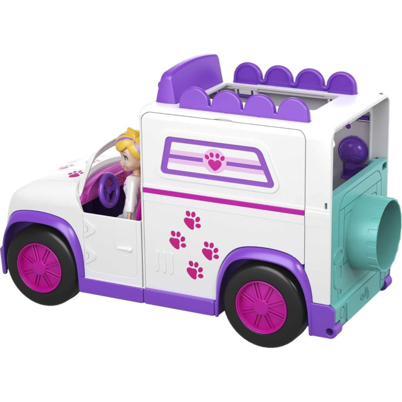 POLLY POCKET Cuddle 'n' Care Mobile Vet Playset TRANSFORMING VET VEHICLE AND 3 PETS. Includes 7.5 CM doll and over 15 vet-themed accessories for animal care. Suitable for ages 4+.