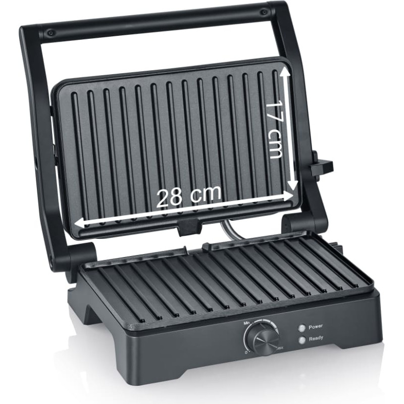 Universalus kontaktinis grilis sveikam maisto gaminimui Atraskite universalias galimybes su mūsų kontaktiniu griliu! Nesvarbu, ar norite kepti sultingus kepsnius, gaminti gardžius sumuštinius, ar tobulus panini, šis grilis yra tobulas virtuvės įrankis jums. Dėl savo lanksčios konstrukcijos galite lengvai keisti savo meniu ir sukurti skirtingus patiekalus, kurie tinka tiek kasdienai, tiek ypatingoms progoms.   Sveikas kepimas ant grotelių su mažai riebalų Vienas didžiausių mūsų kontaktinio grilio privalumų yra galimybė kepti ant grotelių su mažai riebalų. Dėl grotelių plokščių be PFAS nereikia pilti aliejaus, todėl galite mėgautis mėgstamais patiekalais nepakenkdami sveikatai. Grilio skrudintuvas sukurtas taip, kad surinktų visus išbėgančius riebalus, kurie kaupiasi patogiame lašų padėkle. Dėl to maistas yra skanus ir sveikas, puikiai tinkantis sąmoningam vartotojui.   XL grilio paviršius didelėms porcijoms Su XL grilio paviršiumi, kurio matmenys yra 28 x 17 cm, turite daug vietos dideliems skrebučio ar panini gabalėliams kepti ant grotelių. Nesvarbu, ar gaminate maistą šeimai, ar kviečiate svečius, galite lengvai paruošti kelias porcijas vienu metu. Tai taupo laiką ir leidžia gaminti efektyviau.   Idealiai tinka naudoti patalpose Mūsų kontaktinės kepsninės yra puikus pasirinkimas naudoti patalpose, todėl galite mėgautis kepimo ant grotelių malonumu ištisus metus, kad ir koks būtų oras. Dėl kompaktiško dydžio jas lengva laikyti, o dėl patogaus dizaino – pradėti naudoti. Nesvarbu, ar esate patyręs virėjas, ar pradedantysis, įvertinsite nuostabius šios kepsninės rezultatus. Apibendrinant, mūsų kontaktinės kepsninės siūlo daug privalumų sveikam ir įvairiam maisto gaminimui, todėl jos yra nepakeičiamas įrankis jūsų virtuvėje. Užsisakykite jau šiandien ir patirkite skirtumą!