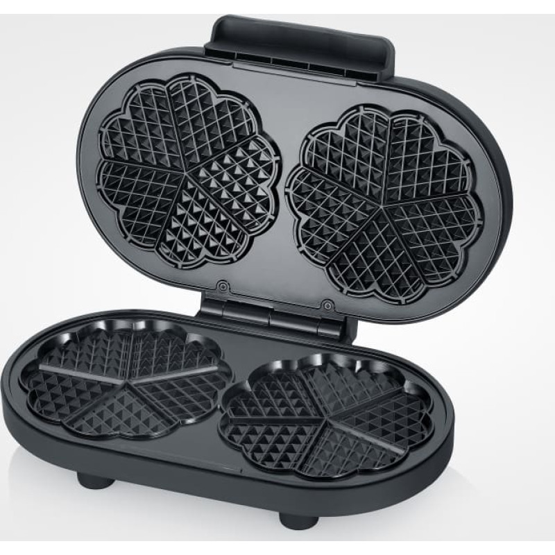 Dviguba vaflinė Dviguba vaflinė, skirta vienu metu kepti du širdies formos vaflius Didelis galingumas (1200 W) ir reguliuojama temperatūra užtikrina, kad abu vafliai iškeps būtent tokie, kokių norite Lėkštės padengtos danga be PFAS Aukščiausios kokybės danga leidžia lengvai valyti ir užtikrina sveiką ir PFAS neturintį vaflių skonį