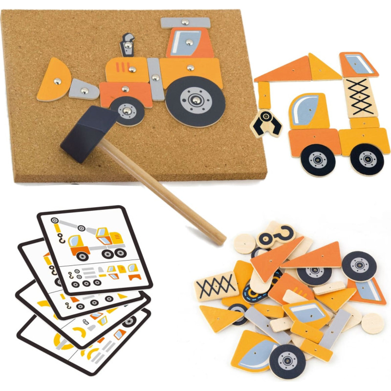 Viga Wooden Nailing Toy Construction Vehicles 45 Pieces Montessori