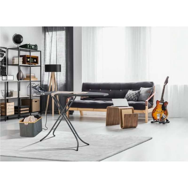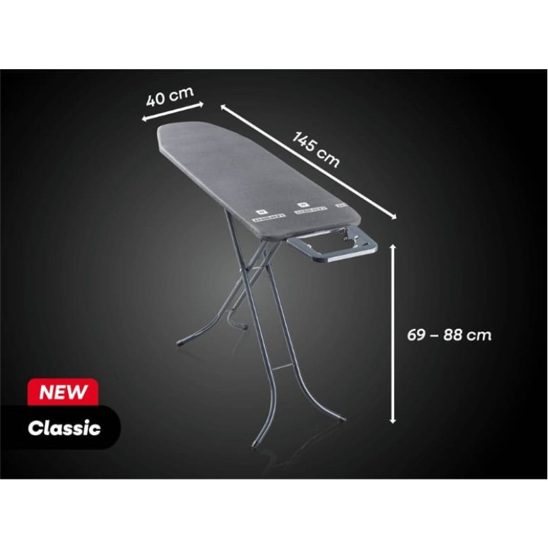 Gludināšana pārvēršas par stilīgu pieredzi ar Classic M Black gludināmo dēli. Gludināmajam dēlim ir kompakta gludināmā virsma, kas izgatavota no augstas kvalitātes paplašināta metāla, kuras izmēri ir 120x38 cm. Aprīkots ar fiksētu metāla gludekļa paliktni, modelis nodrošina drošu gludekļa turētāju, kamēr veļa tiek salocīta. Leifheit gludināmais dēlis padara gludināšanu arī ērtu, jo to var noregulēt no 69 līdz 88 cm augstumam. Classic M Black gludināmais dēlis ir ne tikai funkcionāls, bet arī ārkārtīgi praktisks. Transportēšanas fiksators ļauj gludināmo dēli viegli pārnēsāt un ietaupīt vietu uzglabāšanas laikā. Integrētā augšējā aizsardzība pret rūsu nodrošina, ka gludināmais dēlis ilgu laiku saglabājas labā stāvoklī. Ikvienam, kurš novērtē kvalitāti, dizainu un funkcionalitāti, vajadzētu iegādāties Leifheit Classic M Black gludināmo dēli. Elegantais un praktiskais gludināšanas palīgs ir ideāls sabiedrotais jebkuram mājsaimniecības gludeklim. Classic M Black gludināmais dēlis stilīgā melnā/antracīta dizainā
