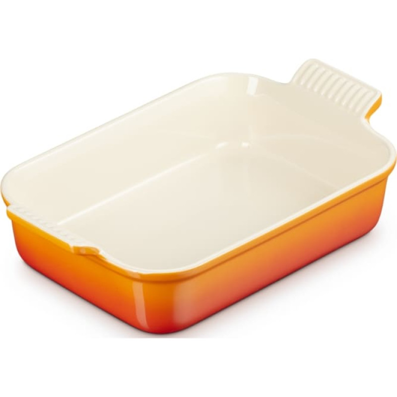 Šis akmens masas trauks ir kā neatliekama virtuves sastāvdaļa. Tā taisnstūra forma ir piemērota visu veidu gatavošanai, padarot to par ļoti daudzpusīgu - ikdienas cepšanai, marinēšanai un pasniegšanai. Viegli satveramie rokturi nodrošina, ka to var droši un bez piepūles pārvietot, savukārt dziļās trauka sienas nodrošina daudz vietas ēdiena gatavošanai. - Glazētais akmens masas trauks ir izturīgs pret skrāpējumiem un viegli tīrāms