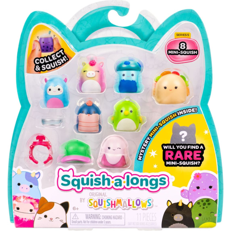 „Squish-A-Longs“ mini herojai – tai naujausi „Squishmallows“ šeimos nariai! Mieli ir maži kolekciniai gyvūnėliai pagaminti iš lengvai suspaudžiamo plastiko ir yra 2,5 cm dydžio. Iš viso kolekcijoje – daugiau kaip 140 skirtingų „Squish-A-Longs“ gyvūnėlių, kuriuos gali rinkti, demonstruoti, jais keistis su draugais ir su jais žaisti. Be to, šie mažyliai puikiai tiks pasipuošti, nes taps šauniu ir stilingu žiedeliu! Susikurk savo unikalų herojų uždėdamas jam akinius, kepures, miego kaukes ir dar daugiau originalių aksesuarų. Rinkinyje esantis kolekcionieriaus gidas leis lengviau sekti savo kolekciją!