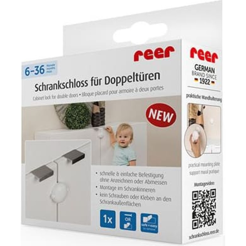 When children begin to crawl and walk, cupboards and drawers become especially tempting for them. The Reer cabinet lock helps effectively prevent small children from accessing sharp objects or dangerous cleaning products. ✔ Easy and quick installation – without measuring or marking A practical installation aid allows the lock to be fitted precisely without tedious measuring or marking. Simply choose the desired installation method, attach the lock to the fixing part, position it on the cabinet, and stick or screw it in place — it is that simple! ✔ Installation on the inside of the cabinet – the outer surface remains untouched The lock is mounted on the inside of the cabinet, so the outer furniture surfaces remain undamaged. Thanks to the specially developed adhesive tape, the lock stays firmly in place, yet it can be removed without leaving marks if needed. ✔ Easy for adults to use as well The contents of cabinets and drawers stay securely locked, but adults can easily open the lock with one hand. The set also includes a practical magnetic wall holder, where the lock can be placed when the cabinet is open. A red marking reminds you to reactivate the lock when children are present. ✔ Universal fit – with or without a centre partition Whether your cabinet has a centre partition or not, this child safety lock is suitable for both options. Instruction videos are available for both installation types, making fitting simple and quick. Product features: – easy and quick installation without measuring or marking; – mounted on the inside of the cabinet — does not damage furniture surfaces; – installation options: with screws or adhesive; – special adhesive tape ensures a strong hold and residue-free removal; – convenient one-handed operation for adults; – practical wall holder for the lock; – colour: white; – material: plastic; – included in the set: 1 lock with fixing accessories.
