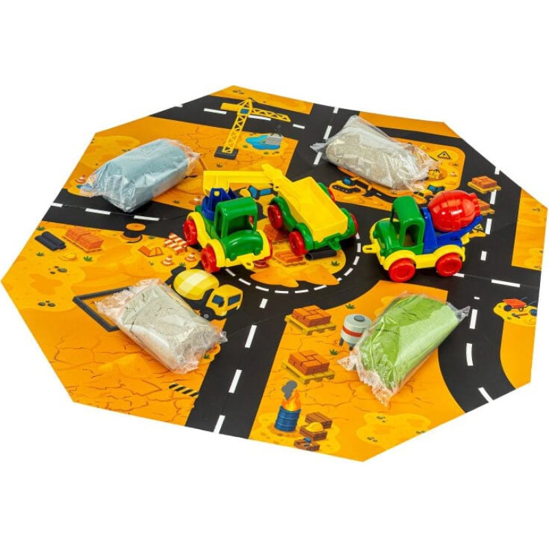 TUBAN dinaminis smėlis – puiki pramoga įvairaus amžiaus vaikams! Dinaminis smėlis yra unikali medžiaga, kuri lengvai byra tarp pirštų ir nepalieka rankų šlapių! Jis niekada neišdžiūsta ir nesukietėja, todėl puikiai tinka įvairioms formoms kurti. Šis rinkinys sujungia statybinę techniką su įtraukiančiu sensoriniu žaidimu. Idealiai tinka vaikams, kurie mėgsta kurti savo konstrukcijas ir eksperimentuoti su skirtingomis tekstūromis. Rinkinyje yra dviejų rūšių smėlis: dviejų spalvų dinaminis smėlis ir mėlynas purus smėlis, suteikiantys įvairias įdomias sensorines patirtis. Rinkinį papildo tvirti Wader statybiniai transporto priemonės. Papildomas privalumas – funkcionali pakuotė: ją išskleidus, ji virsta statybų aikštelės tematikos pagrindu. Kilmės šalis: Lenkija.