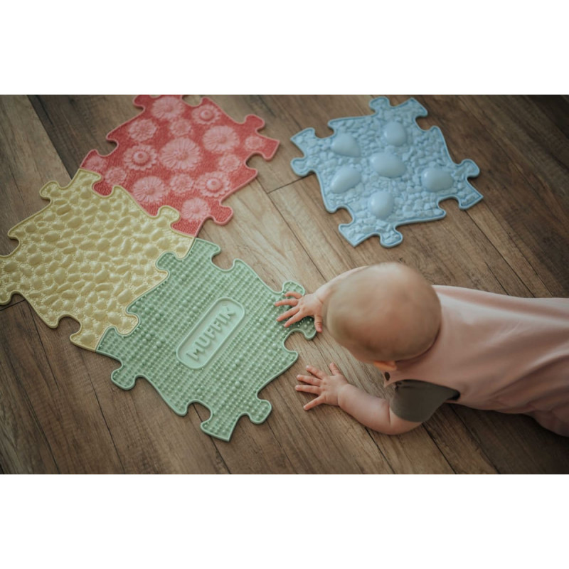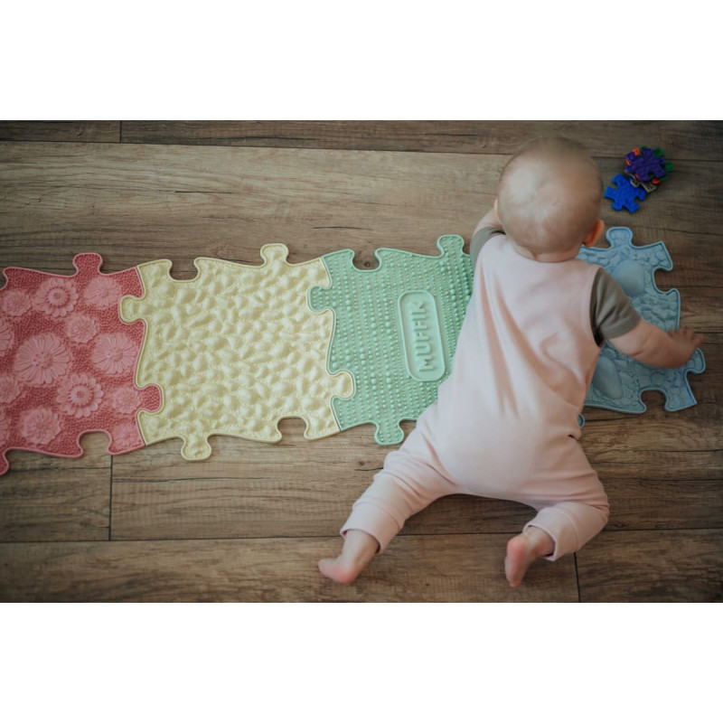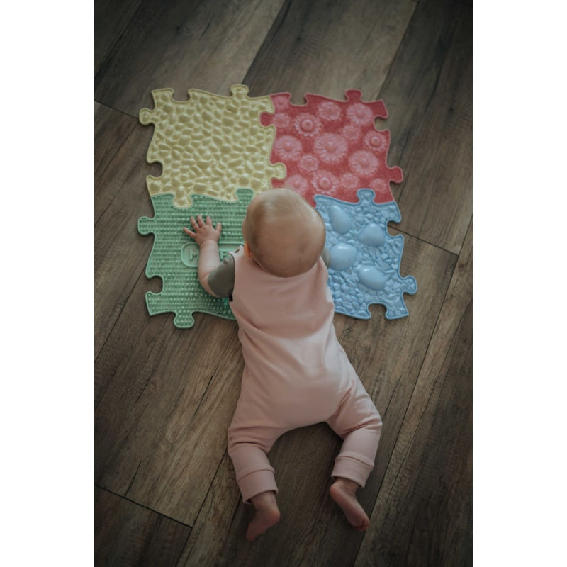 Sensorā ortopēdiskā paklājiņa sākumkomplekts - atslēga uz veselīgu attīstību un laimīgu bērnību jūsu mazuļiem. Šajā unikālajā komplektā ietilpst rūpīgi atlasīti ortopēdiskie paklājiņi, kas būs ne tikai rotājumi jūsu bērnu istabā, bet vēl svarīgāk, palīdzēs pareizi attīstīt bērna līdzsvaru un stabilitāti. Komplektā ietilpst četri cietie un mīkstie ortopēdiskie sensorie paklājiņi. Cietās paklājiņu virsmas intensīvi masē katru pēdas milimetru un maksimāli uzlabo asinsriti. Mīkstos paklājiņus izmanto kāju relaksācijai, reģenerācijai un asins cirkulācijai, kas ir būtiska to nostiprināšanai un rehabilitācijai. Vecākiem bērniem tiek stimulētas pēdas, kā arī tiek labi izvingrināti pēdu gareniskās un šķērsvirziena velves. Pieaugušajiem tas veicina vēnu vingrināšanu, kas ir svarīgi cīņā pret trombozi un varikozām vēnām. Šis sensorais ortopēdiskais paklājiņš ir vairāk nekā tikai rotaļlieta. Tas ir ieguldījums jūsu bērna veselīgā izaugsmē un priekā. Ortopēdiskie sensorie paklāji attīsta iztēli, smalko motoriku, koordināciju, telpisko orientāciju, orientēšanos pa labi un pa kreisi un reakcijas ātrumu. Paklājiņš palīdz iemācīties bērniem krāsas, ciparus un vārdus svešvalodā. Šis sensorā ortopēdiskā paklājiņa puzles komplekts ir izstrādāts sadarbībā ar fizioterapeitiem. Sensorā ortopēdiskā paklājiņa priekšrocības: Dažādas virsmas ir svarīgas, lai spertu pirmos soļus. Stiprina pēdas, potītes, ceļgalus un muskuļus. Rehabilitācija (PEC) Novērš staigāšanu uz pirkstgaliem Pēdu atslābināšanās Uzlabo asinsriti Reflektora masāža Stiprina dziļo mugurkaula stabilizācijas sistēmu Stimulē pēdas Plakanās pēdas profilakse Venozā vingrošana varikozu vēnu un trombozes profilaksei pieaugušajiem Komplektā ietilpst 4 dažādas sensorās ortopēdiskās daļas. Izmēri: 29,8x29,8 cm Izgatavots no elastīga PVC (polivinilhlorīda), kas atbilst šādiem standartiem: EN 71-1:2014 + A1:2018 un EN 71-2:2011 + A1:2014 un EN 71-3:2019-08.
