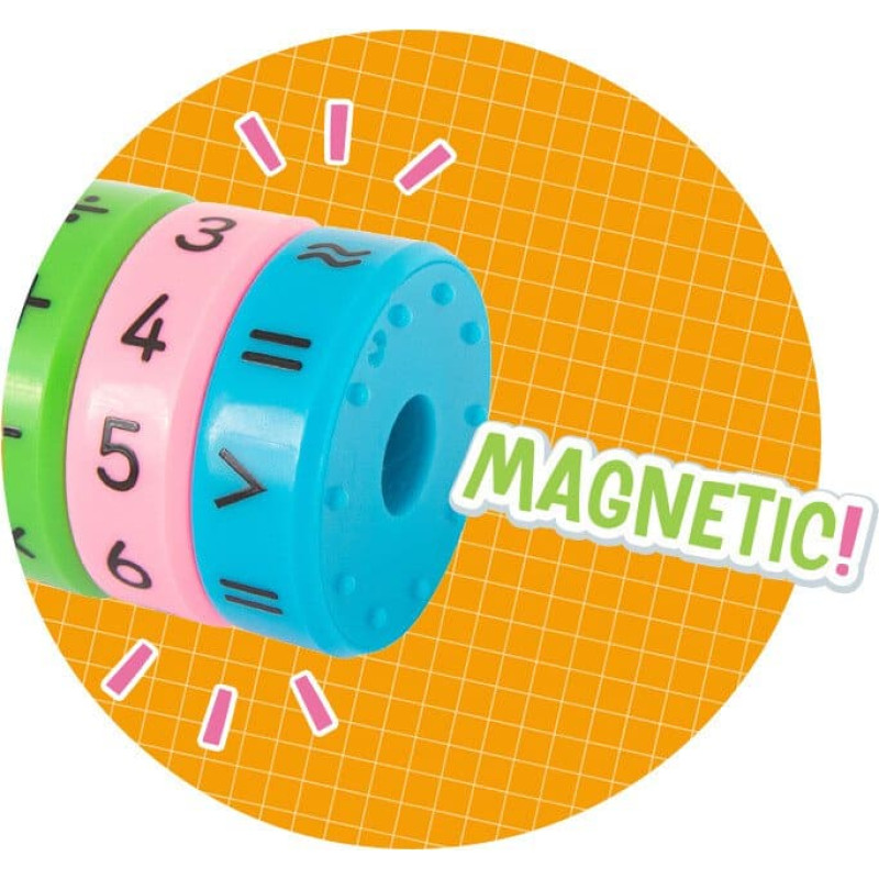 Sukdami skaičius sugalvokite įvairius matematinius veiksmus ir jų sprendimus. Skaičių diskai yra magnetiniai. Dydis: 6 x 3 x 3 cm. Dėmesio! Netinka vaikams iki 3 metų, dėl smulkių detalių yra pavojus užspringti. Kilmės šalis: K.L.R.