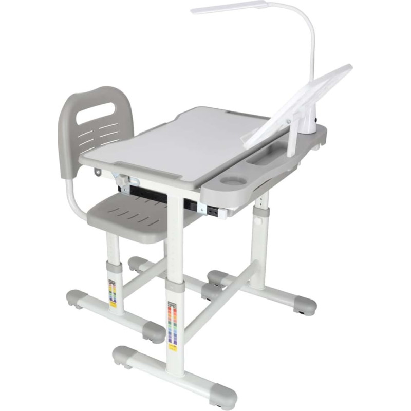 Vaikų rašomasis stalas su stalčiumi, kėde ir lempa, pilkas