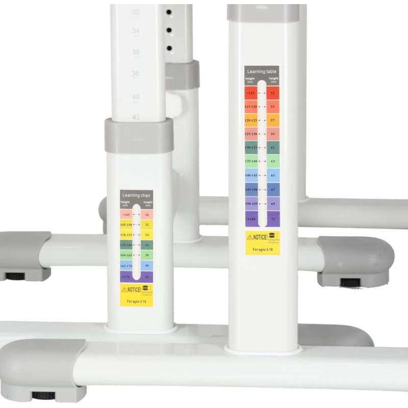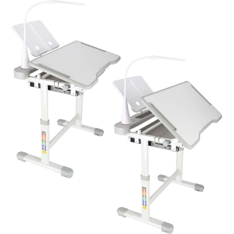 Reguliuojamo aukščio stalas su pakeliamu stalviršiu ir stalčiumi puikiai tinka mokyklinio amžiaus vaikams. Stalo ir kėdės aukštis pritaikomas pagal vaiko ūgį. Rinkinyje yra LED lempa, knygų laikiklis ir kabliukas kuprinei – viskas patogiai suplanuota mokymuisi.