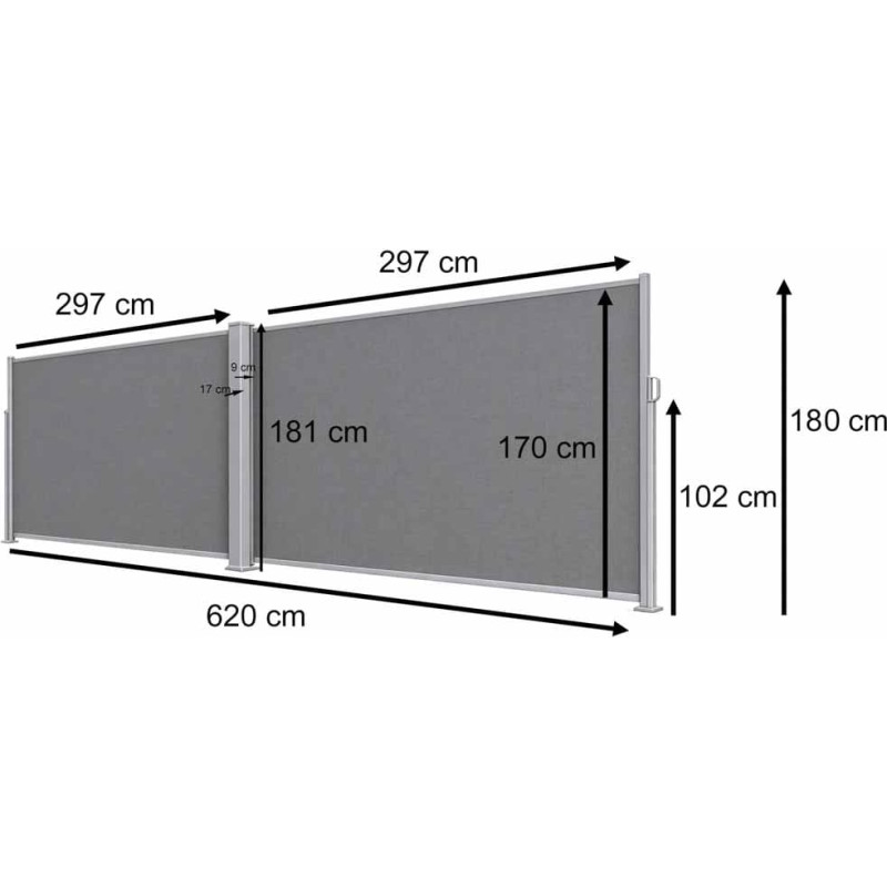 LUARO šoninė kampinė terasos markizė, ištraukiama užuolaida 181 x 620 cm pilka